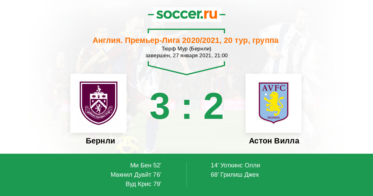 27 января «Бернли» принимает «Астон Виллу» на своем стадионе в рамках очередного тура чемпионата Англии.