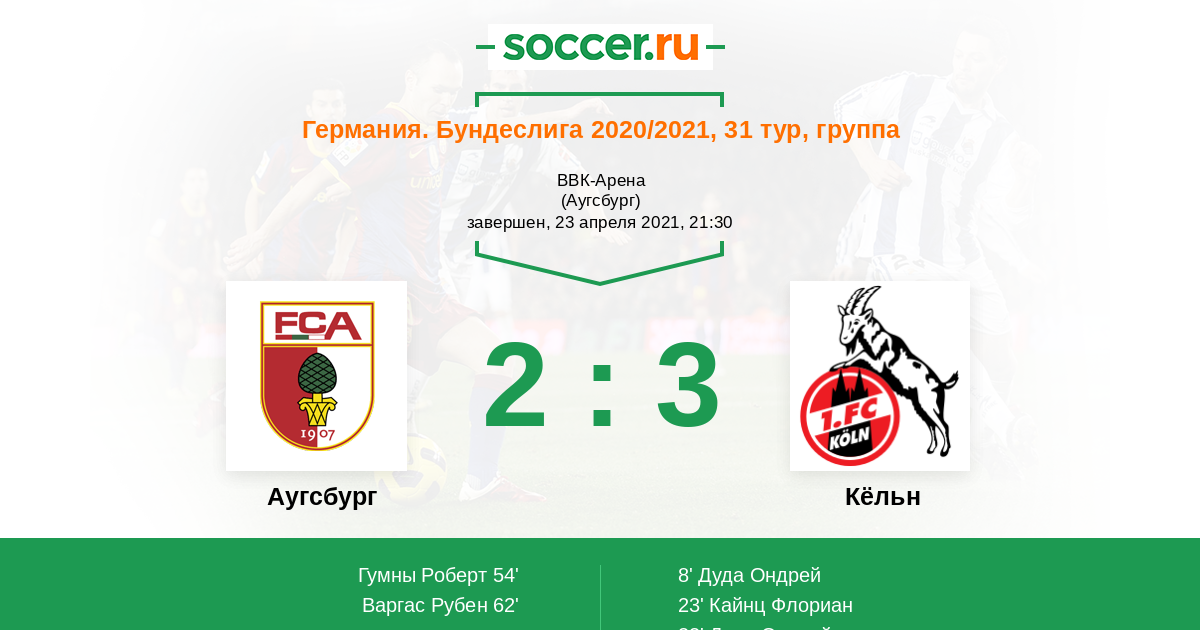 31-й тур чемпионата Германии подарит нам интересную встречу, где «Аугсбург» принимает дома «Кёльн».