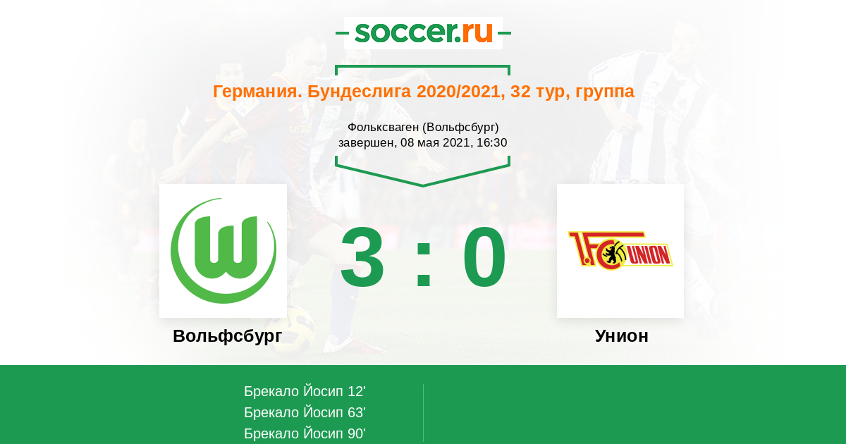 Записи блогов матча Вольфсбург против Унион