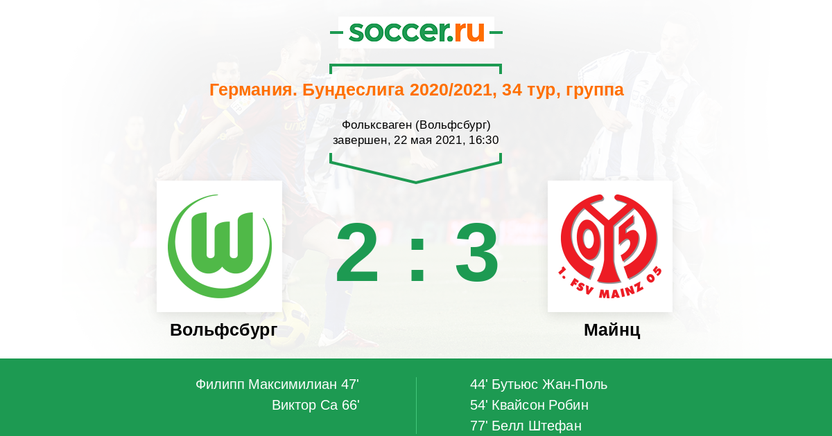 В матче 34-го тура Бундеслиги «Вольфсбург» сыграет дома с «Майнцем». Предлагаем обзор ставок букмекеров и прогноз на эту встречу.