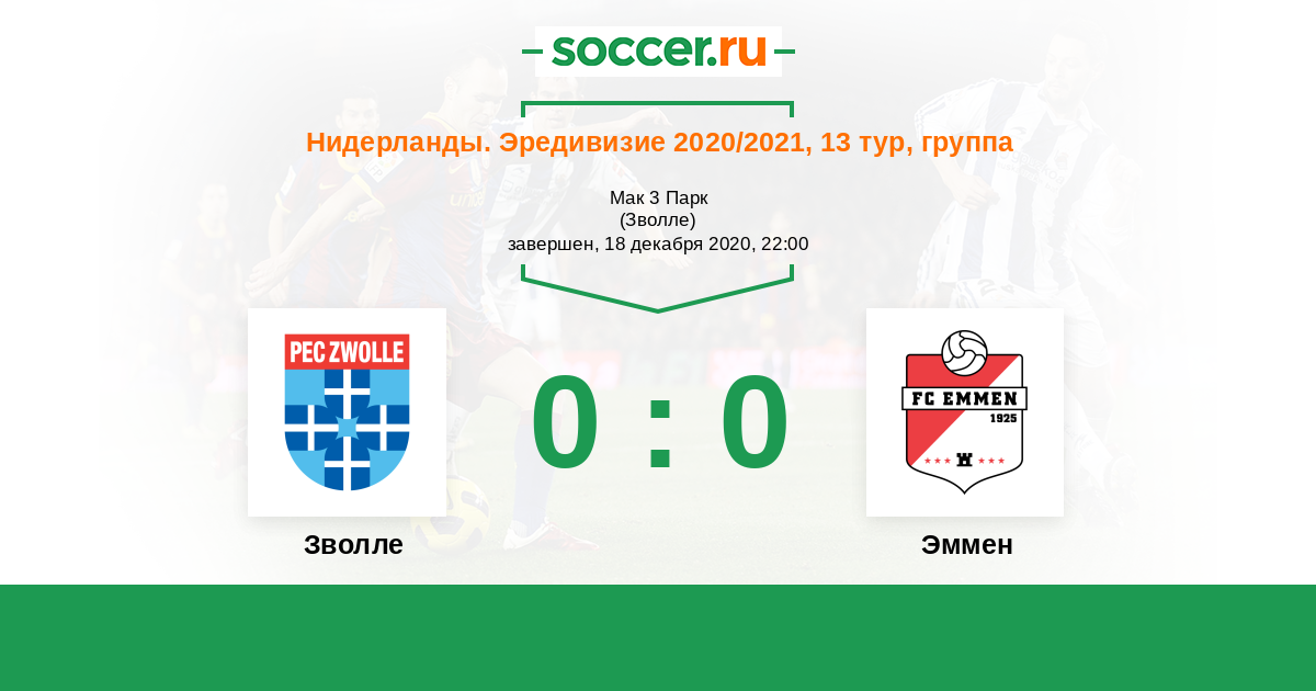 «Зволле» — «Эммен»: прогноз на матч чемпионата Нидерландов (18.12.2020)