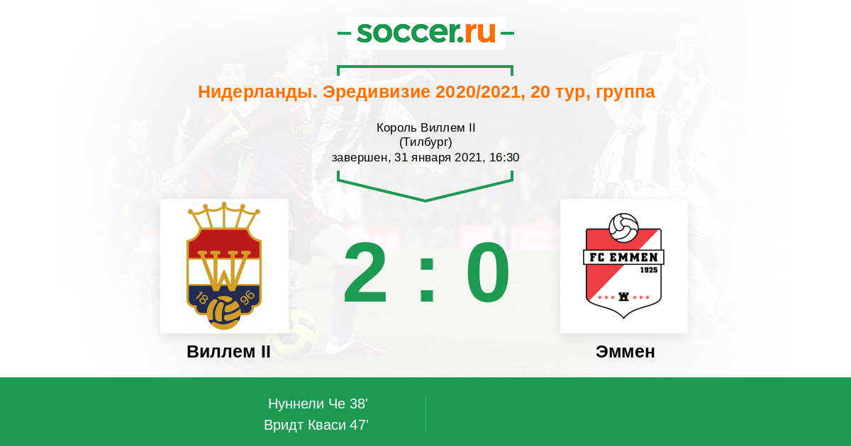 Записи блогов матча Виллем II против Эммен