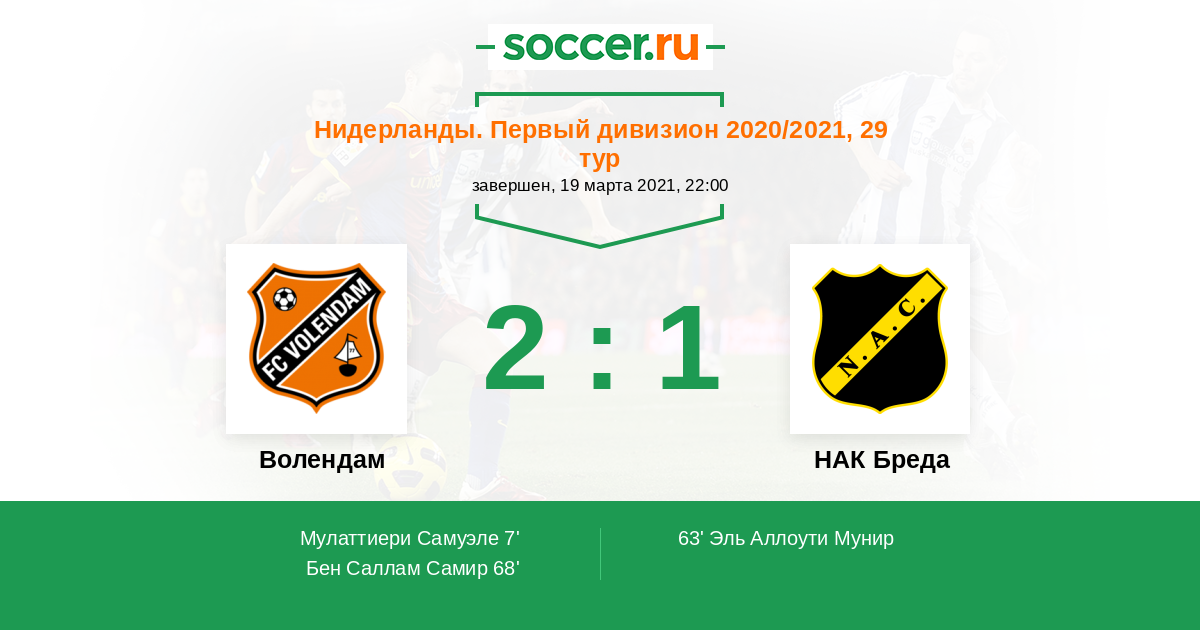 «Волендам» — «НАК Бреда». Прогноз на матч Первого дивизиона Нидерландов (19.03.2021)
