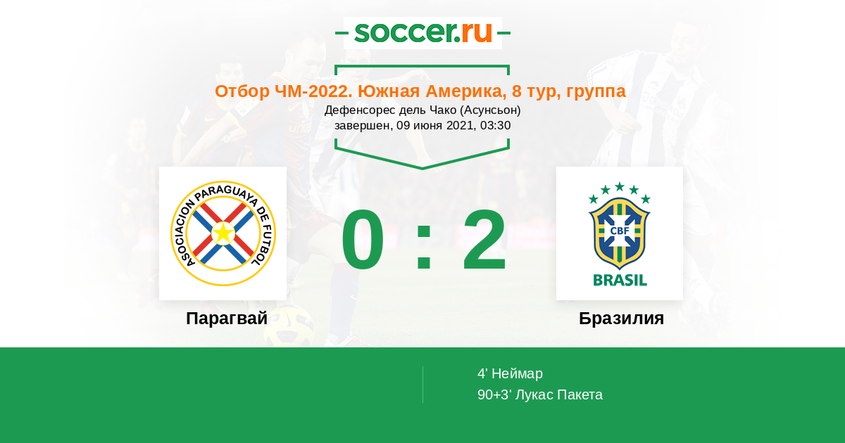 Парагвай — Бразилия. Прогноз на матч квалификации ЧМ-2022 (09.06.2021)
