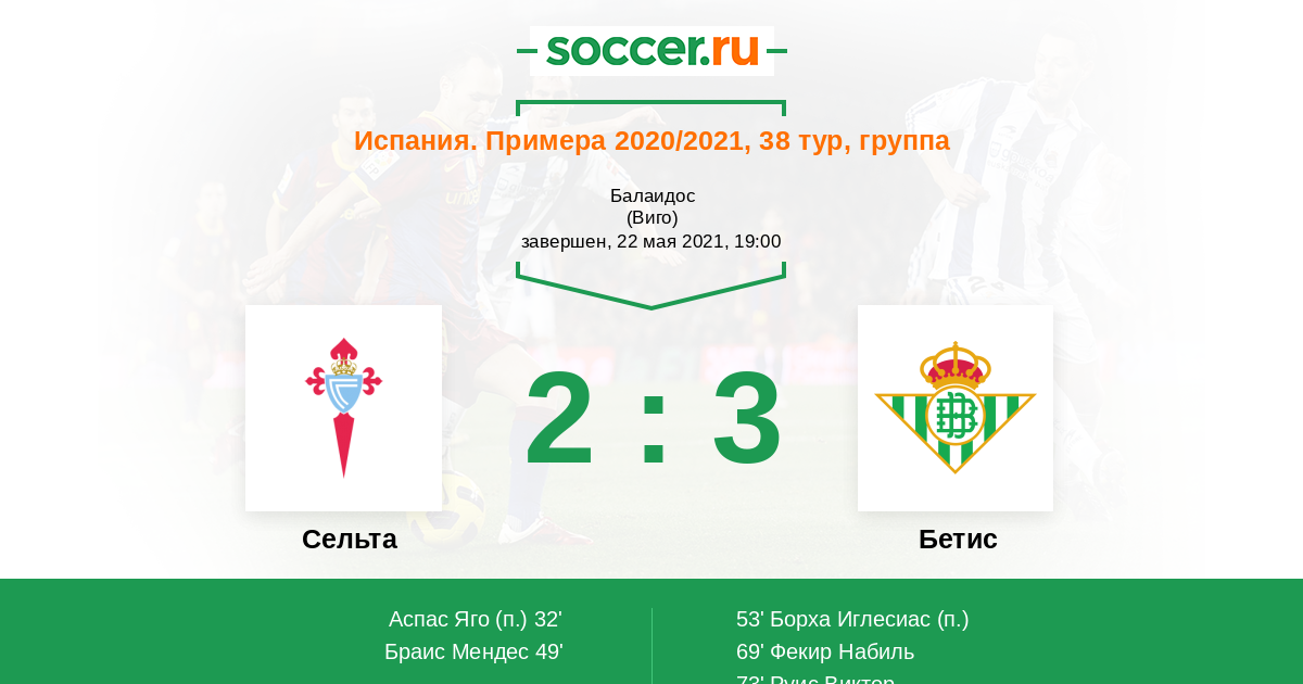 «Сельта» — «Бетис». Прогноз на матч Примеры (22.05.2021)