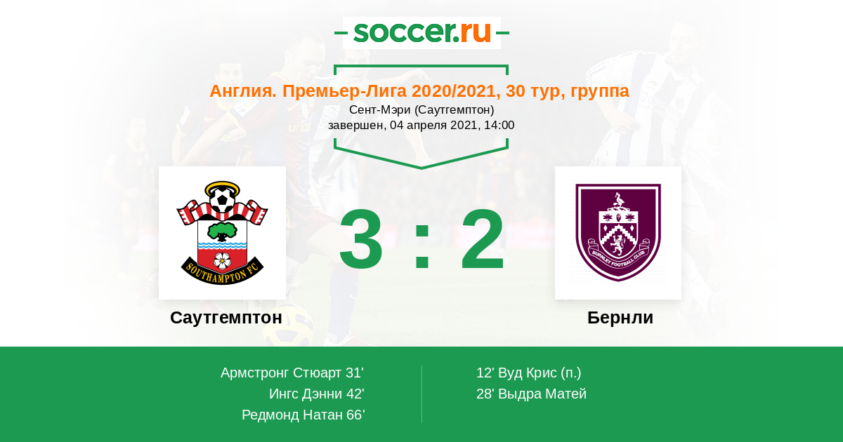 Записи блогов матча Саутгемптон против Бернли