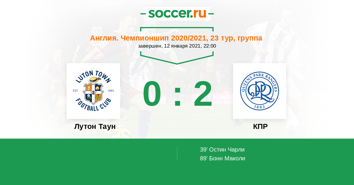 Прогноз и обзор ставок букмекеров на матч 23-го тура английского Чемпионшипа «Лутон Таун» — КПР, который пройдет 2 января 2021 года, вы найдете в нашем анонсе.