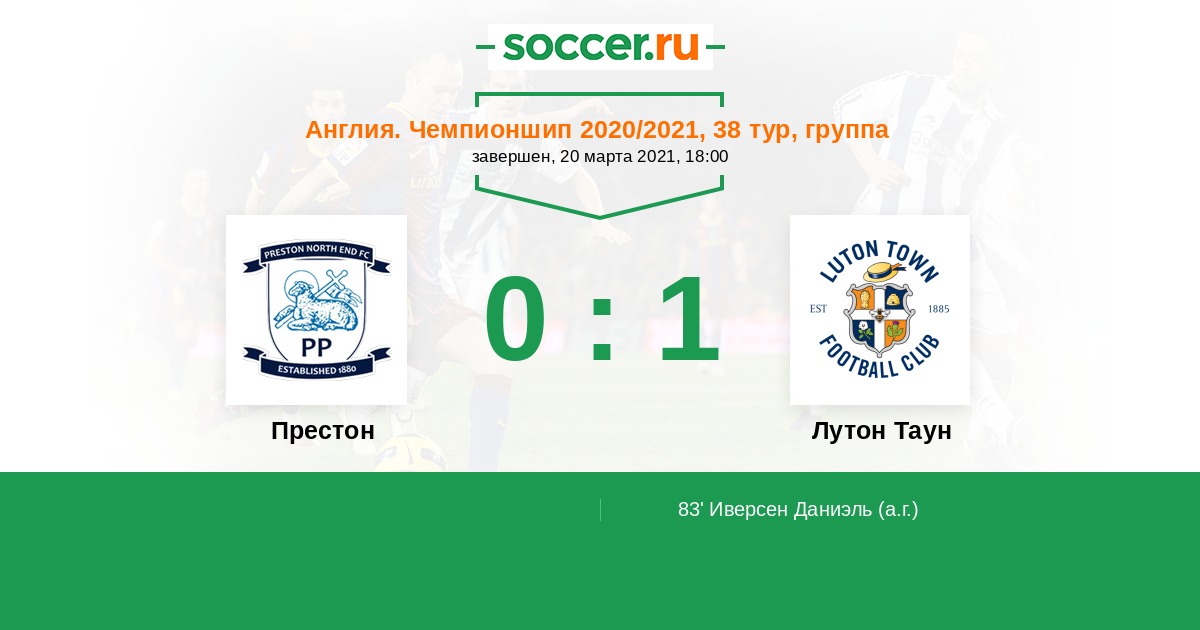 «Престон» играет против «Лутон Таун» в 38-м туре английского Чемпионшипа. Этот поединок запланирован на 20 марта 2021 года.