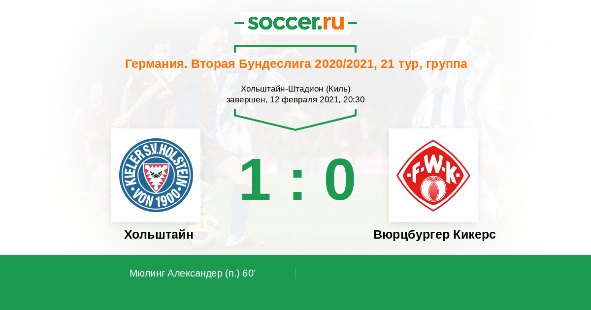 «Хольштайн» — «Вюрцбургер Кикерс». Прогноз на матч второй Бундеслиги (12.02.2021)