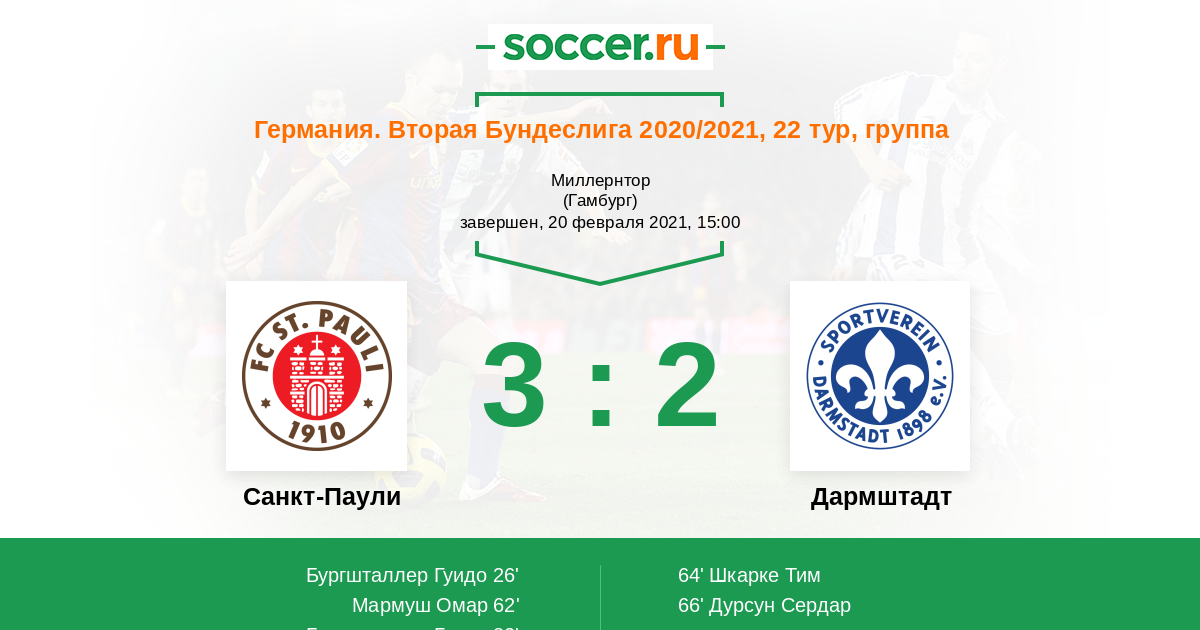 «Санкт-Паули» — «Дармштадт». Прогноз на матч Второй Бундеслиги (20.02.2021)