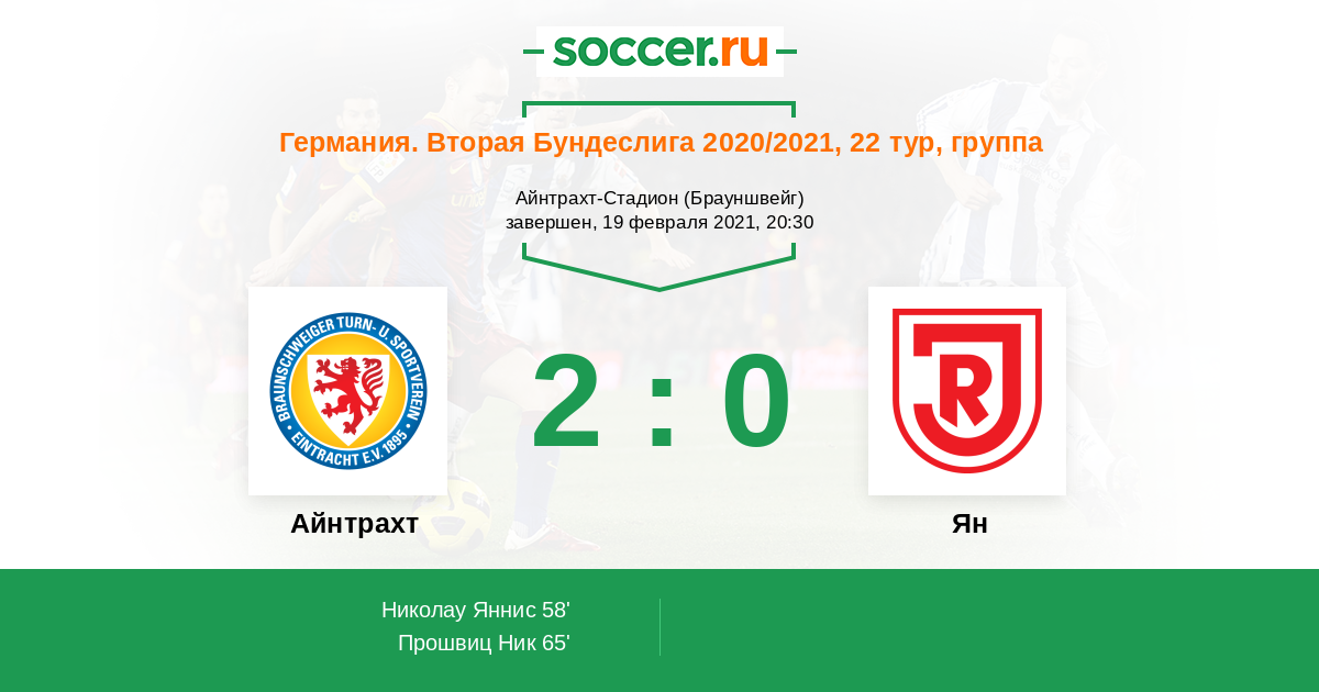 «Айнтрахт» Брауншвейг — «Ян Регенсбург». Прогноз на матч второй Бундеслиги (19.02.2021)