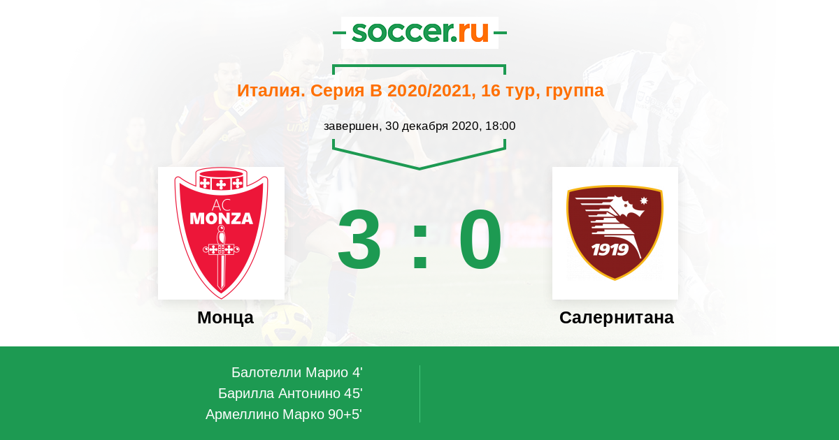 «Монца» — «Салернитана»: прогноз на матч Серии В (30.12.2020)