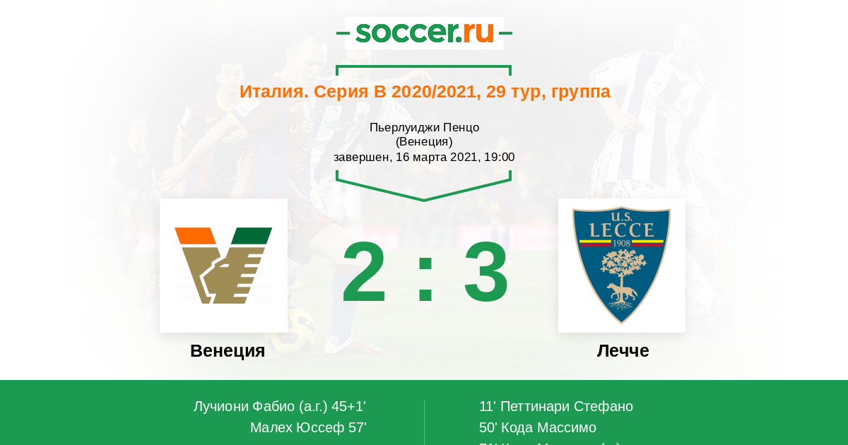Записи блогов матча Венеция против Лечче