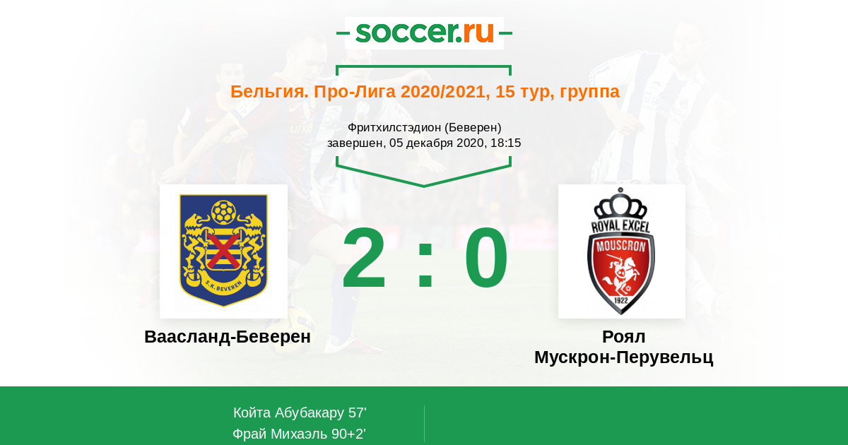 «Ваасланд-Беверен» — «Мускрон». Прогноз на матч чемпионата Бельгии (05.12.2020)