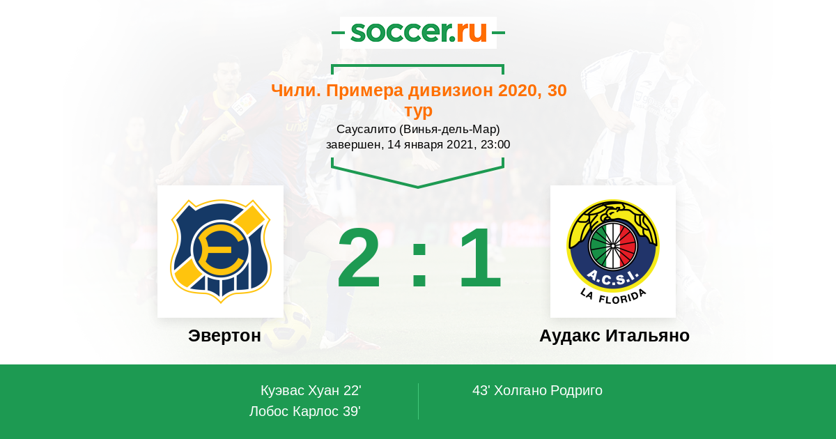 «Эвертон» и «Аудакс Итальяно» сыграют 14 января в рамках 30-го тура Высшего дивизиона Чили.