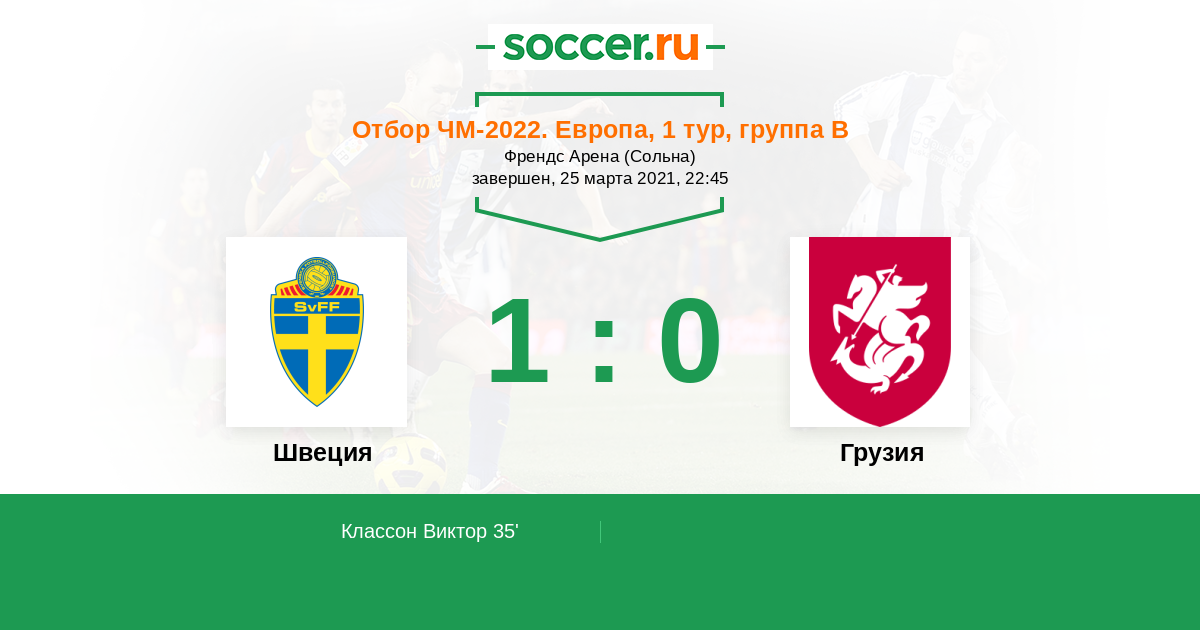 Швеция – Грузия. Прогноз на матч квалификации ЧМ-2022 (25.03.2021)