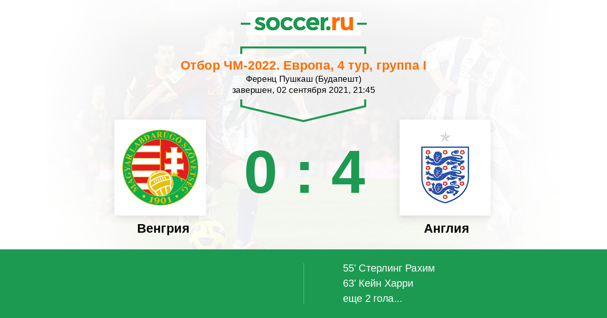 Венгрия – Англия. Прогноз на матч квалификации ЧМ-2022 (02.09.2021)