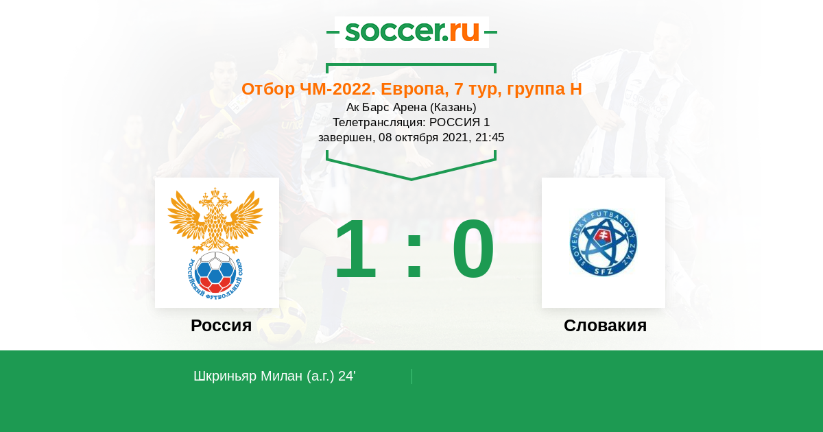 Россия – Словакия. Прогноз на матч квалификации ЧМ-2022 (08.10.2021)