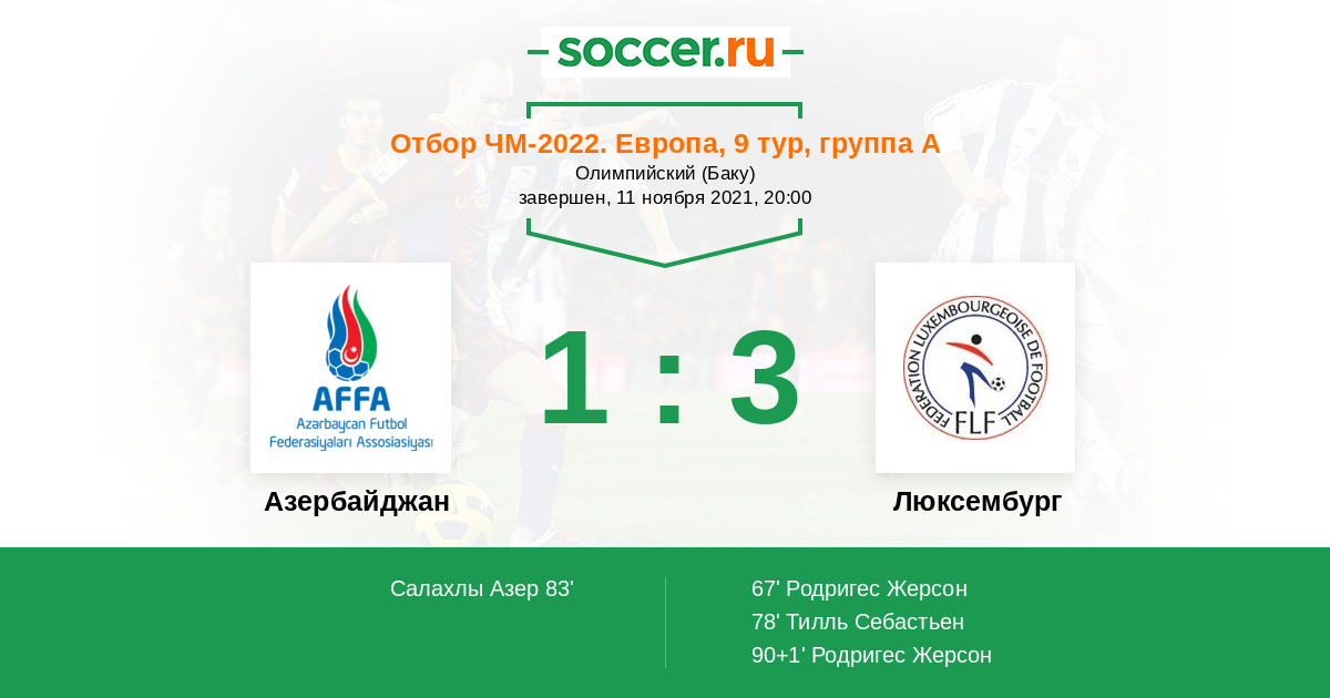 Азербайджан – Люксембург. Прогноз на матч квалификации ЧМ-2022 (11.11.2021)