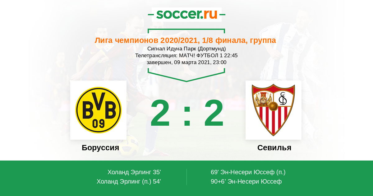 Холанд вообще монстр! Остановите кто-нибудь этого вундеркинда) Севилье стоит отдать должное, что они нашли в себе силы сравнять счет, но не более того. Фанатов дортмундских шмелей с долгожданным выходом в 1/4 финала ЛЧ!