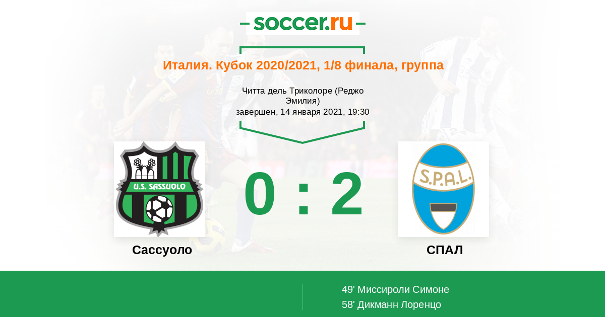«Сассуоло» — СПАЛ. Прогноз на матч Кубка Италии (14.01.2021)