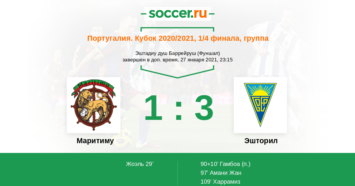 «Маритиму» — «Эшторил»: прогноз на матч Кубка Португалии (27.01.2021)
