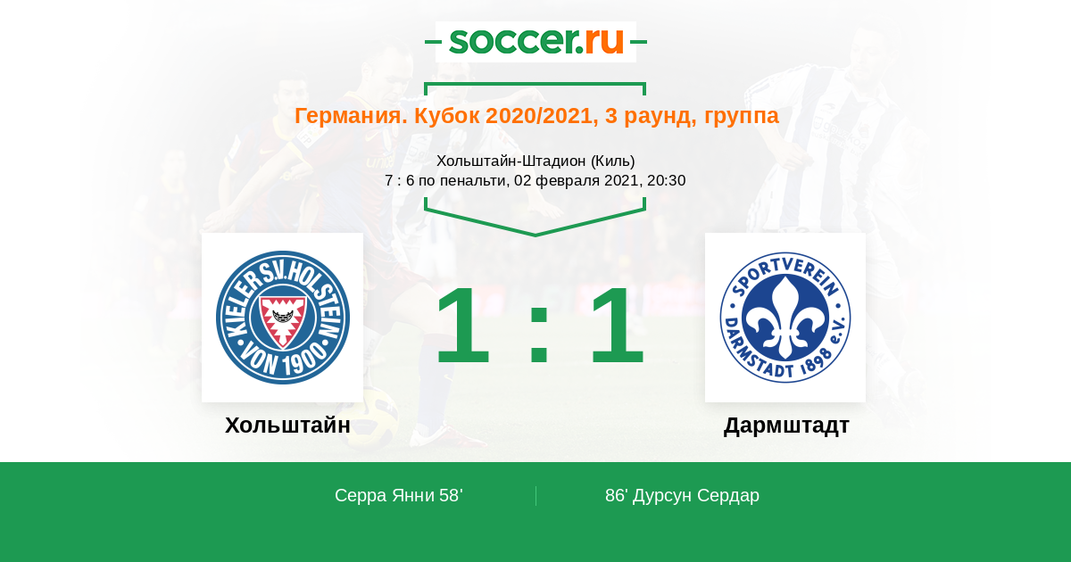 «Хольштайн» — «Дармштадт»: прогноз на матч Кубка Германии (02.02.2021)