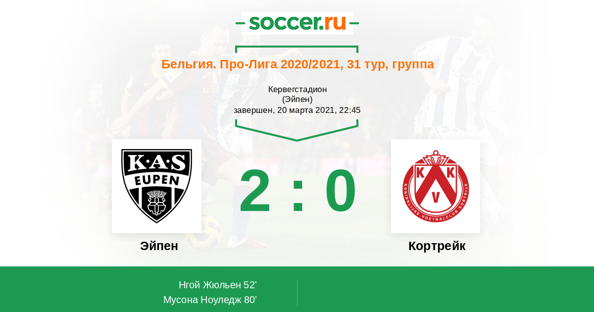 «Эйпен» и «Кортрейк» сыграют между собой в 31-м туре чемпионата Бельгии. Предлагаем вам прогноз и обзор коэффициентов букмекеров на эту встречу.