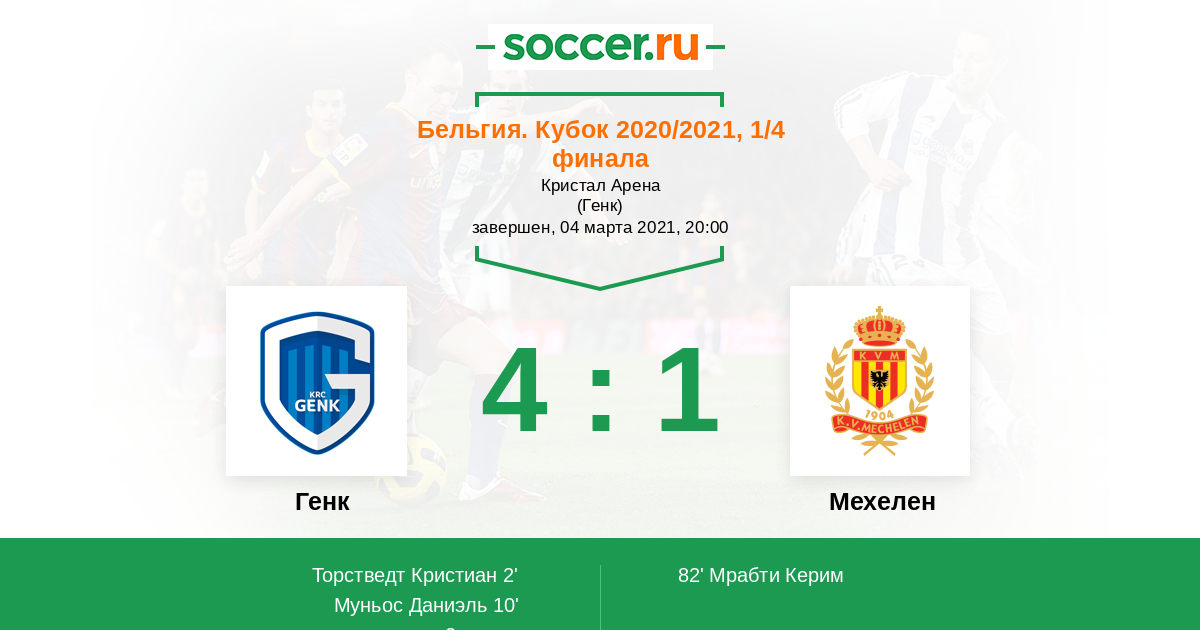 «Генк» — «Мехелен». Прогноз на матч Кубка Бельгии (04.03.2021)