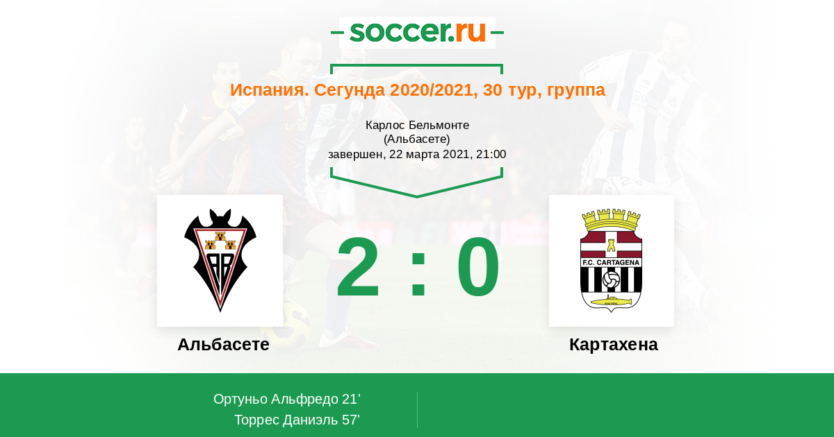 «Альбасете» играет против «Картахены» в рамках 30-го тура Сегунды в Испании.