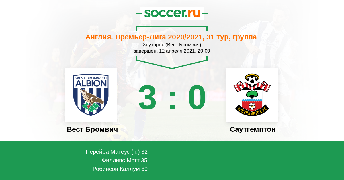 «Вест Бромвич» — «Саутгемптон». Прогноз на матч АПЛ (12.04.2021)