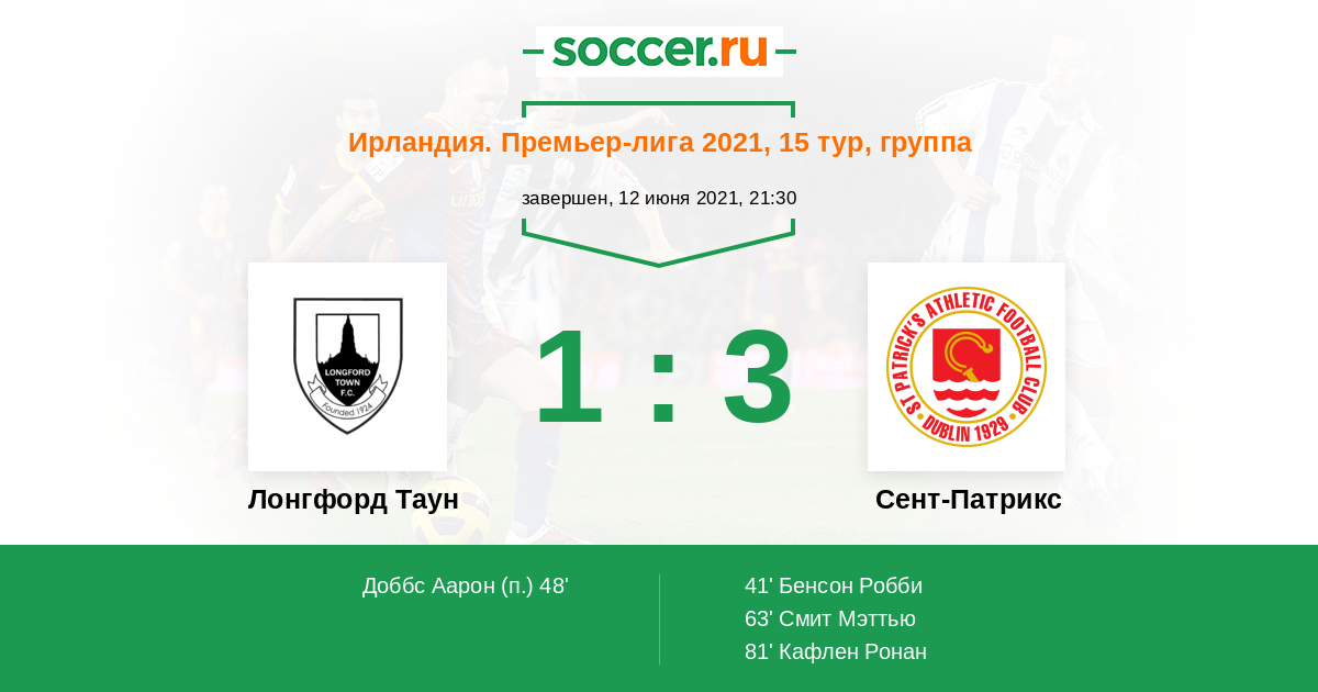 «Лонгфорд Таун» — «Сэйнт Патрикс». ‎Прогноз на матч Премьер-Лиги Ирландии (12.06.2021)