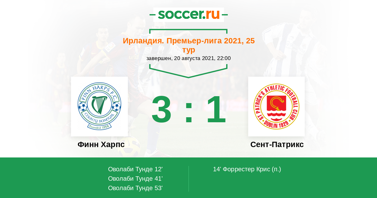 Записи блогов матча Финн Харпс против Сент-Патрикс