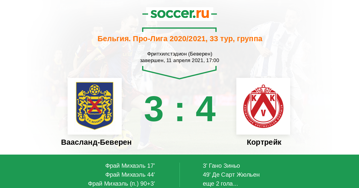 Записи блогов матча Ваасланд-Беверен против Кортрейк