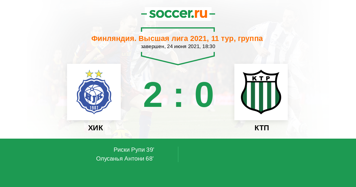 ХИК — КТП. Прогноз на матч чемпионата Финляндии (24.06.2021)
