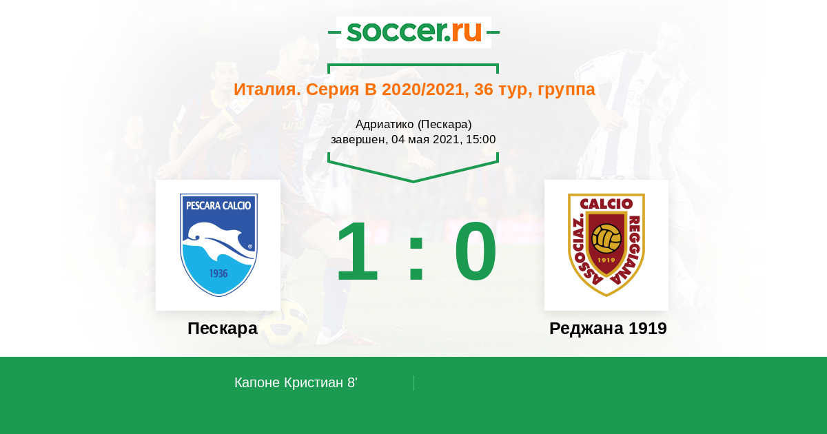 В 36-м туре второго по силе чемпионата Италии можно будет наблюдать интересный поединок, где «Пескара» поборется с «Реджаной» за три очка.