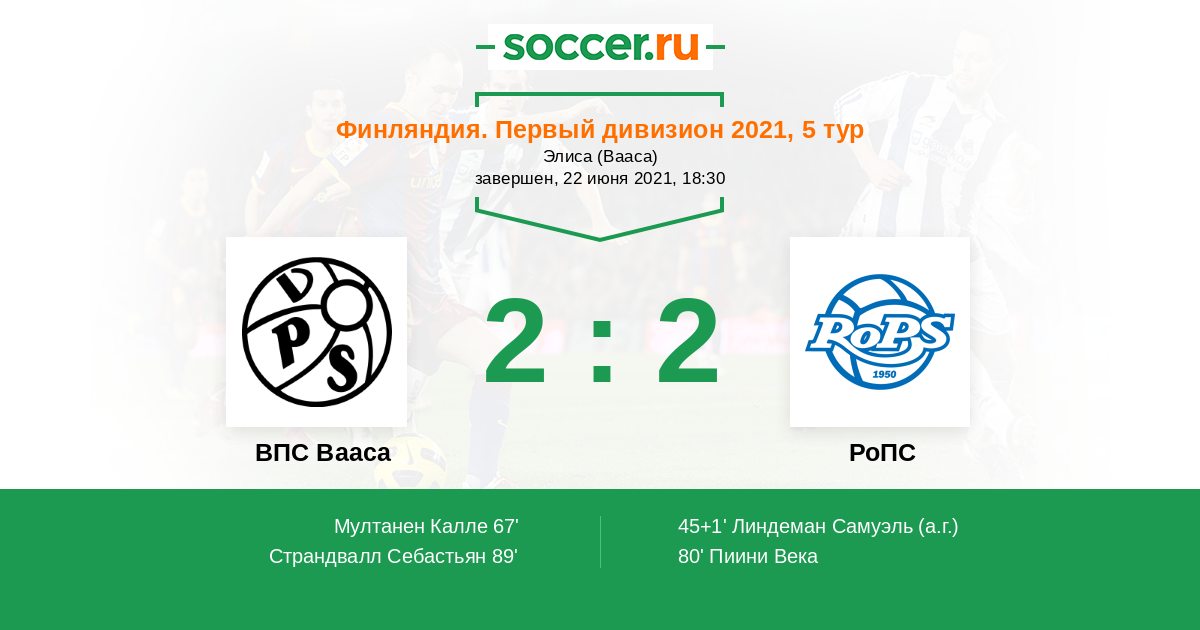 «ВПС Вааса» — «РоПС».‎‎ Прогноз на матч Первой лиги Финляндии (22.06.2021)