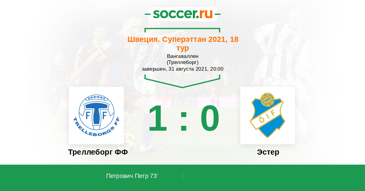 31 августа 2021 года «Треллеборг ФФ» встретится с «Эстером». Букмекеры Фонбет представили котировки на грядущий матч.