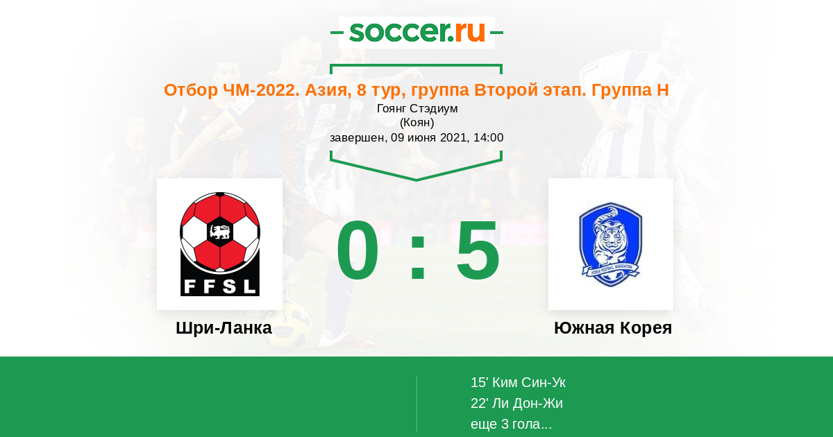 Шри-Ланка – Южная Корея. Прогноз на матч квалификации на ЧМ-22 (09.06.2021)