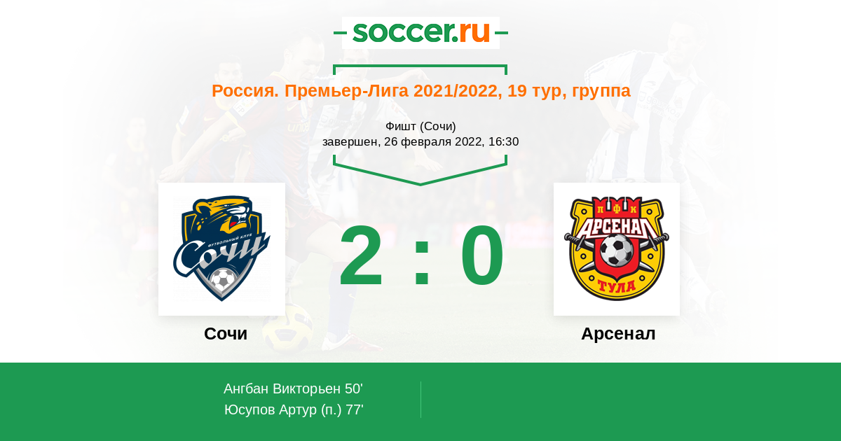 «Сочи» — «Арсенал» Тула. Прогноз на матч РПЛ (26.02.2022)