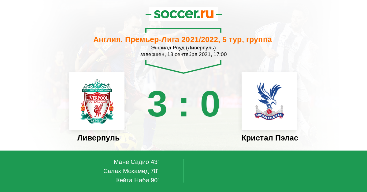 «Ливерпуль» — «Кристал Пэлас». Прогноз на матч АПЛ (18.09.2021)
