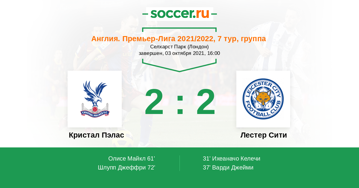 «Кристал Пэлас» — «Лестер». Прогноз на матч АПЛ (03.10.2021)