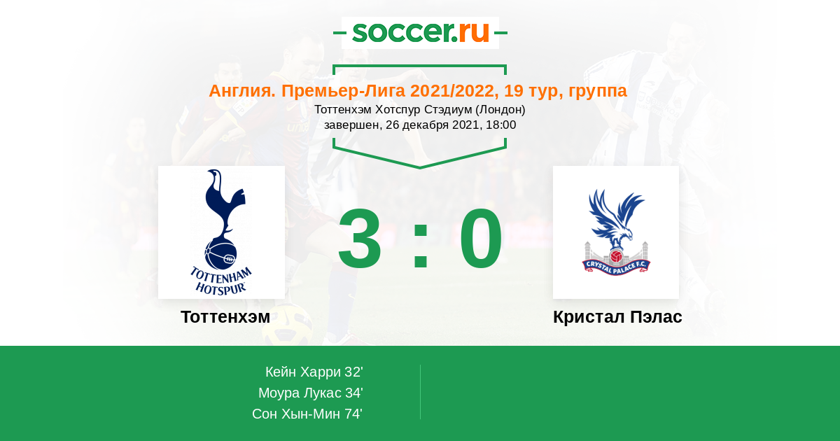 Зачастую "Тоттенхэм" не испытывает проблем с "Кристал Пэлас" на своем поле. Последние шесть домашних матчей "Тоттенхэм" выиграл с общим счетом 13:1. А при Конте команда еще ни разу не проигрывала на своем поле – пять побед и одна ничья.