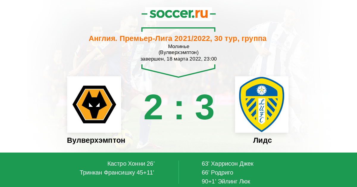 Лидс будет бороться до конца, тяжелейшая победа, на характере на зубах вытащили. а волки молодцы подали нуждающимся.