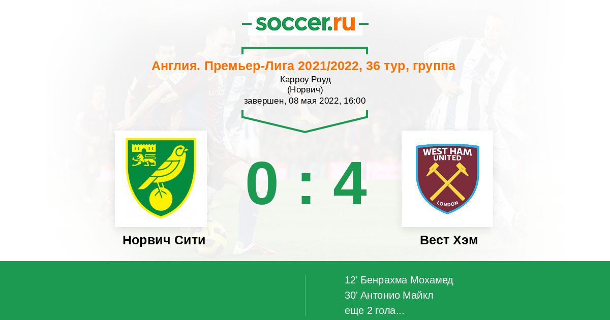 «Норвич Сити» — «Вест Хэм». Прогноз на матч английской Премьер-лиги (08.05.2022)