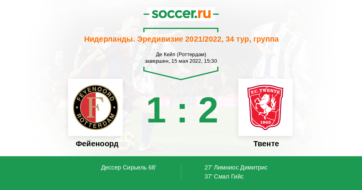«Фейеноорд» — «Твенте». Прогноз на матч нидерландской Эредивизи, 34 тур (15.05.2022)