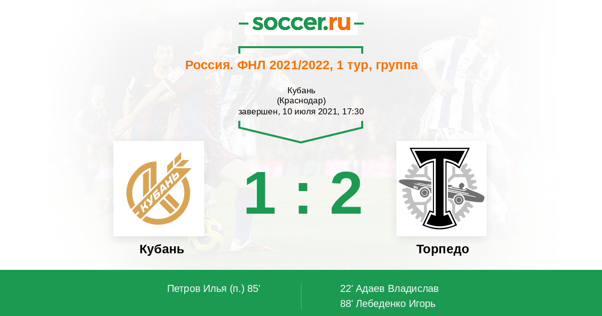 «Кубань» — «Торпедо». Прогноз на матч ФНЛ (10.07.2021)