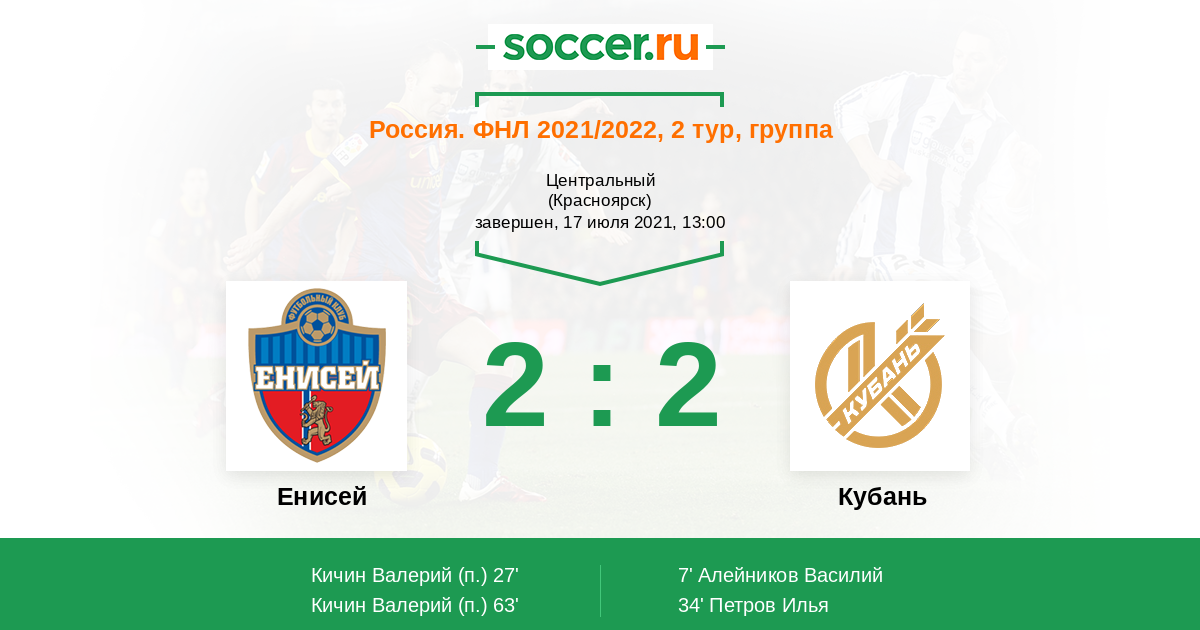 «Енисей» — «Кубань». Прогноз на матч ФНЛ (17.07.2021)