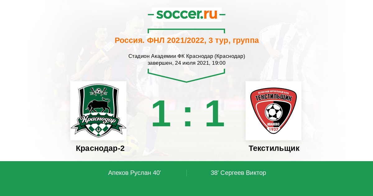 Записи блогов матча Краснодар-2 против Текстильщик
