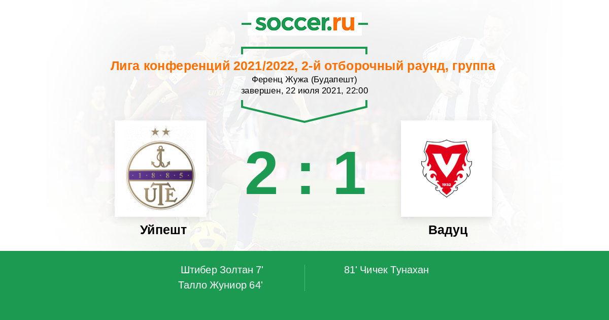 Во 2-м туре квалификации Лиги конференций «Вадуц» сыграет на выезде с «Уйпештом». Предлагаем прогноз и обзор ставок букмекеров на эту встречу.